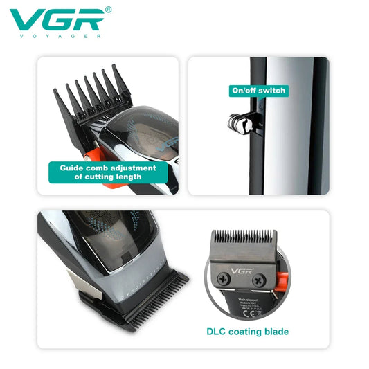 VGR Hair Clipper Professional Trimmer Adjustable Hair Cutting Machine Rechargeable Clipper LED Haircut Clipper for Men V-196