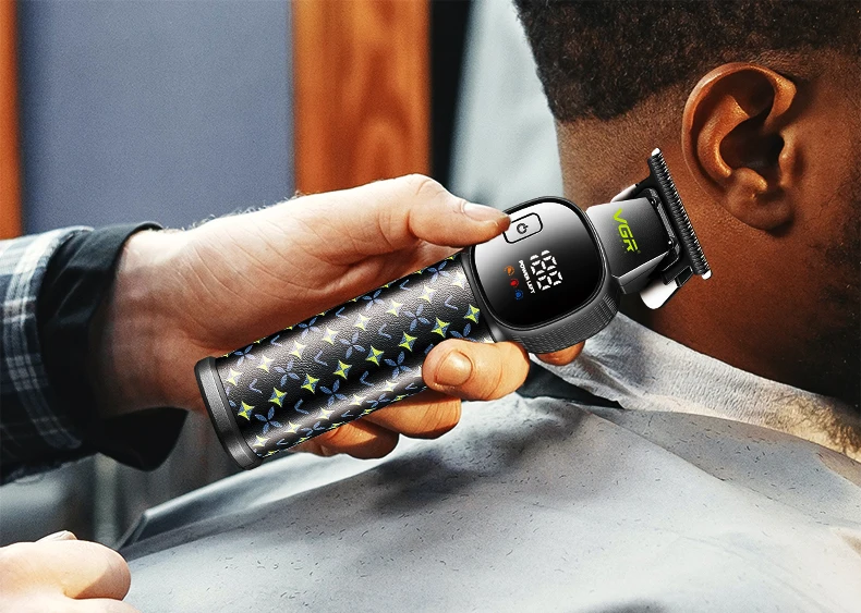 GR V-185 new hair clipper LED intelligent digital hair trimmer ceramic stainless steel blade professional electric push shear