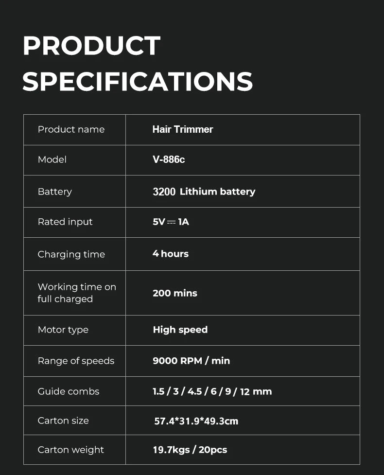 ➜ 6; Equipped with a complete cutter guide comb, to meet your various hair trimming, hair design needs